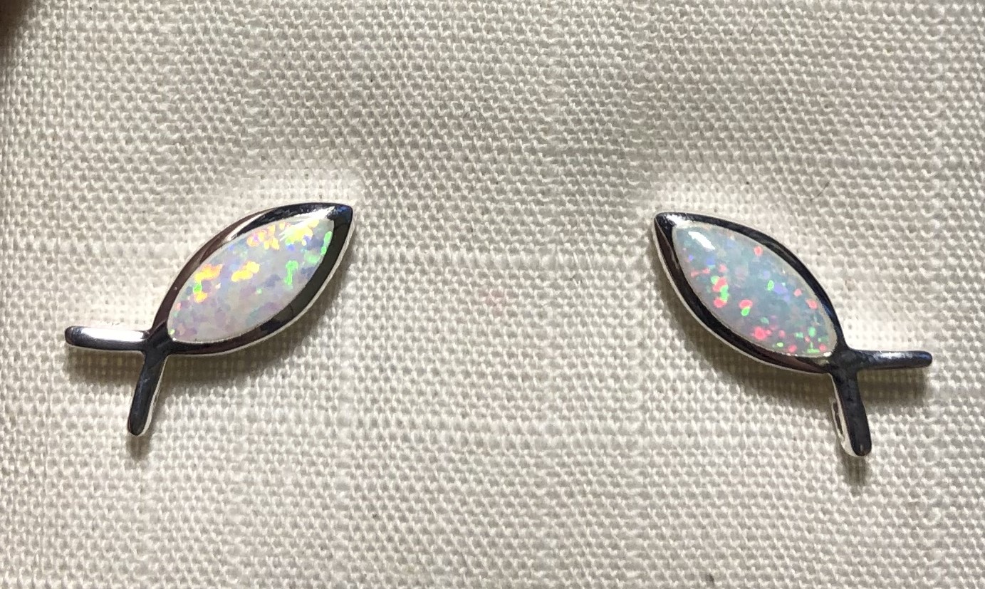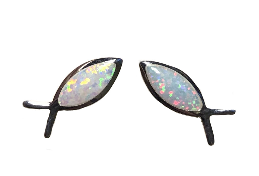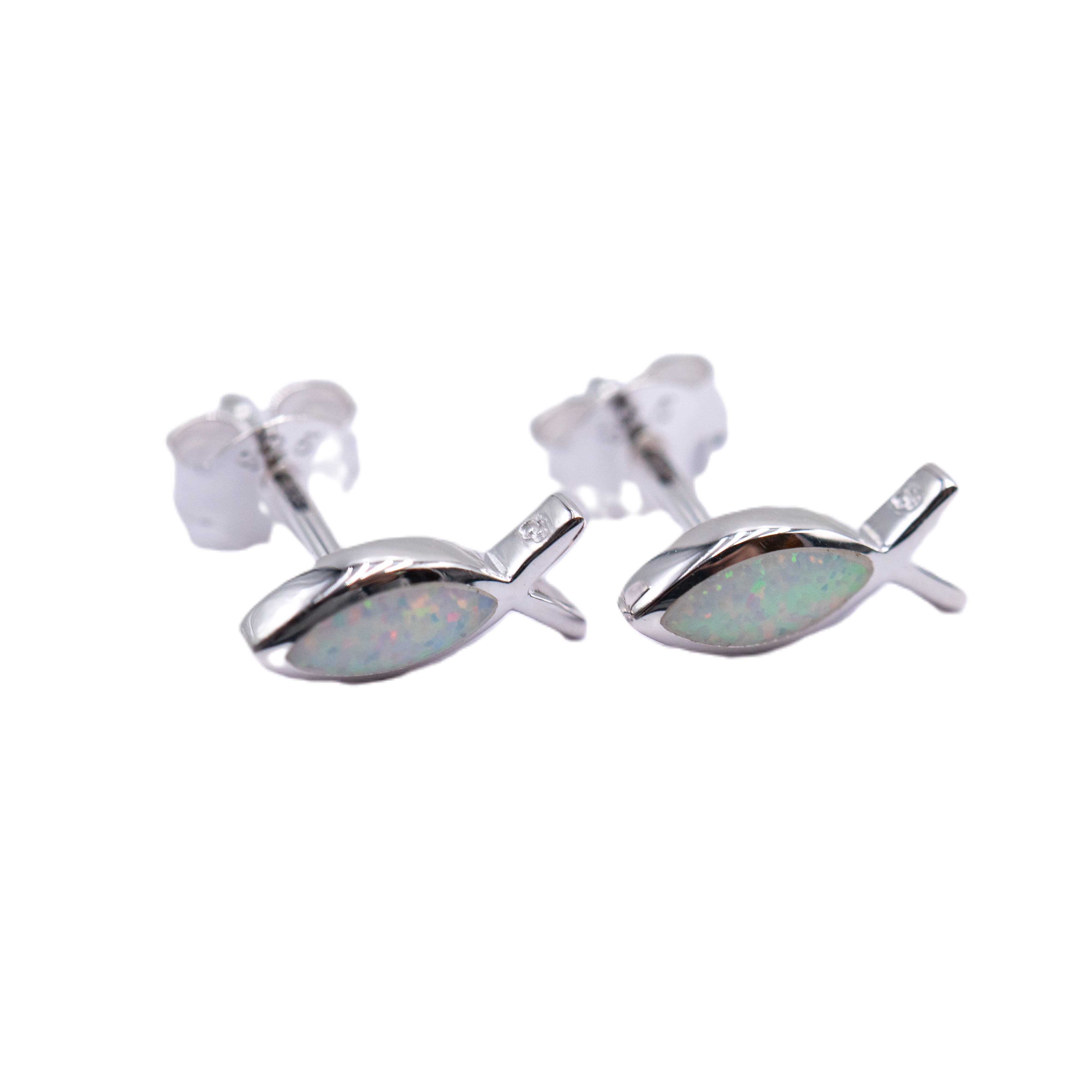 Ohrstecker Fisch weiss art. Opal 925 Silber