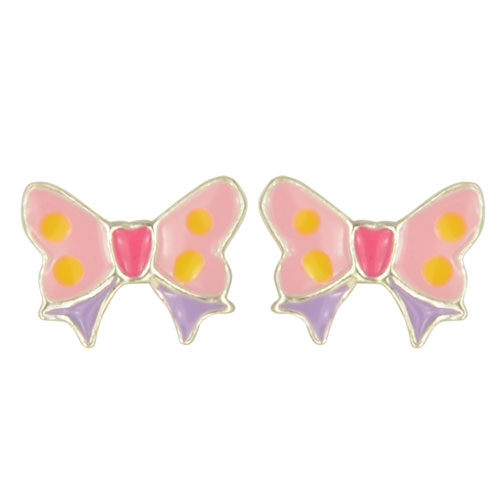Hübsche Ohrstecker. Sie sind aus 925er Silber gefertigt. Das rosa Schmetterlingsmotiv mit lila und roten Akzenten, ca. 10 x7 mm groß, ist ebenfalls aus 925er Silber gefertigt, wurde von Hand kaltemailliert. Dieses Schmuckstück ist echte Handarbeit und von hoher Qualität.
